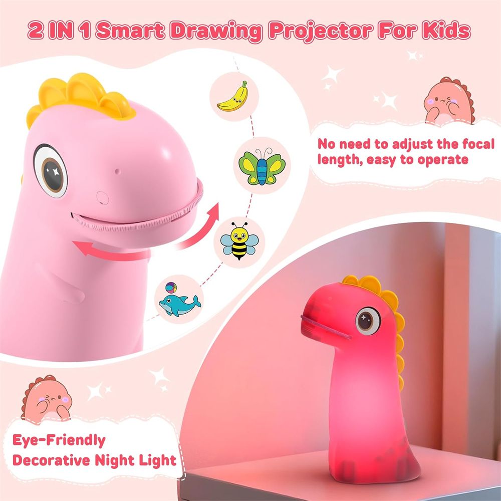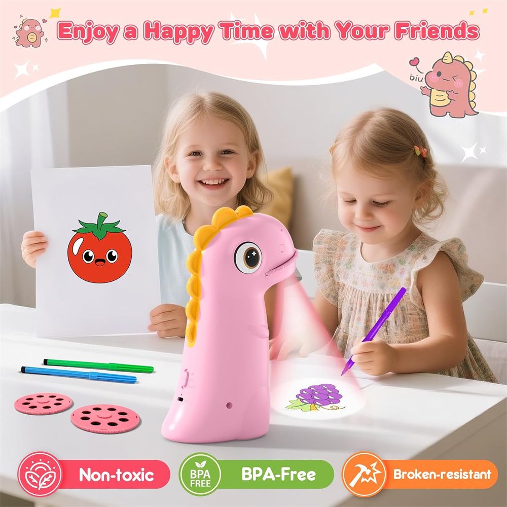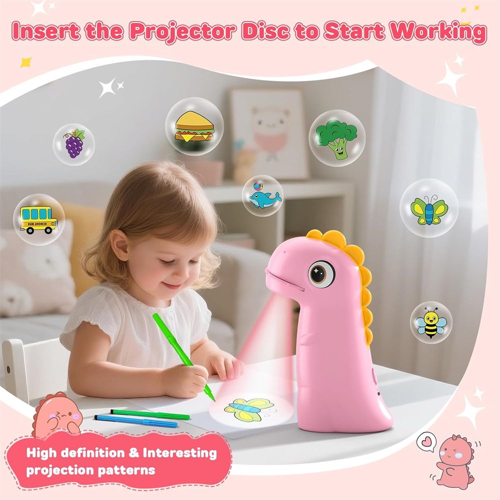 Discover an engaging method for children to learn drawing with this kids' art projector. This trace and draw projector is an educational toy designed to enhance creativity, concentration, and fine motor skills through projection tracing. Its dinosaur-themed design makes it an attractive kids toy for both independent play and interactive parent-child activities.